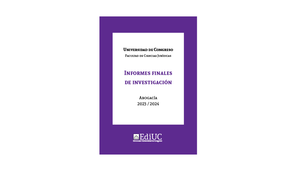 Esta obra tiene por objeto dar a conocer los resultados de los proyectos de investigación realizados por docentes y alumnos de la Facultad de Ciencias Jurídicas de la Universidad de Congreso, entre junio de 2023 y agosto de 2024.